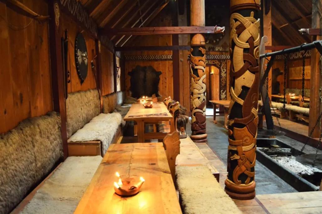 Begge husene er innredet slik vi tror det kan ha vært, med datidens religiøse symboler og utstyr som de hadde. Elevene får ta på og studere ulike gjenstander og verktøy som man hadde den gangen. Vi snakker om hvilke naturressurser de hadde, hva de importerte fra andre land og hva slags teknologi de kunne hjelpe seg med.